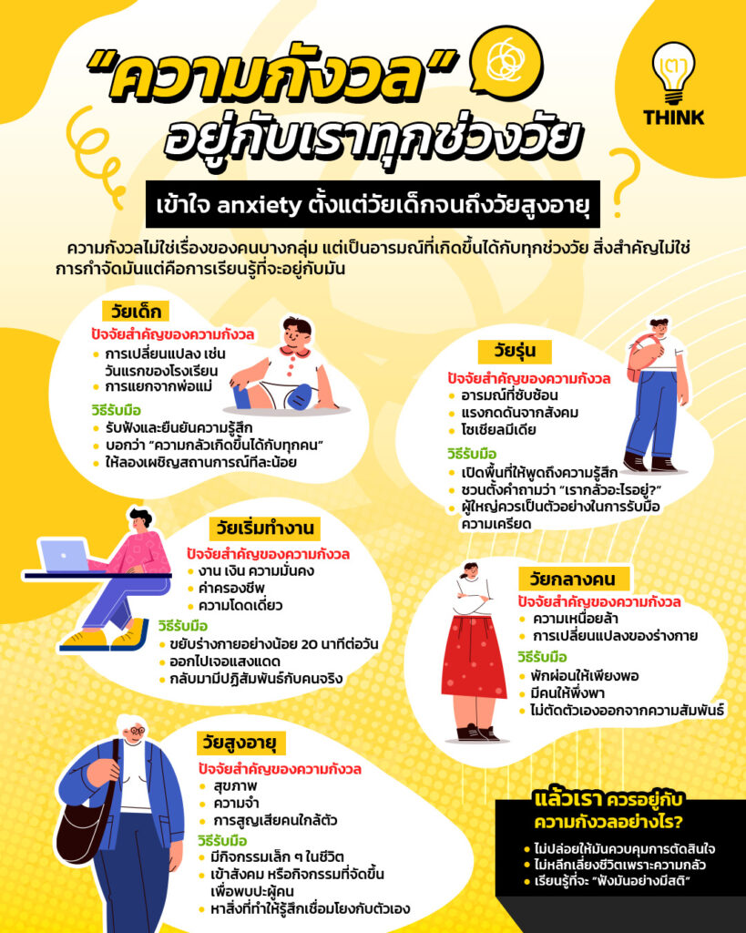ตั้งแต่เด็กที่กลัววันแรกของโรงเรียน วัยรุ่นที่กังวลเรื่องการยอมรับ ไปจนถึงผู้ใหญ่ที่แบกรับเรื่องงาน เงิน และครอบครัว